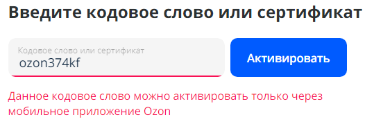 код ozon374kf