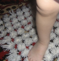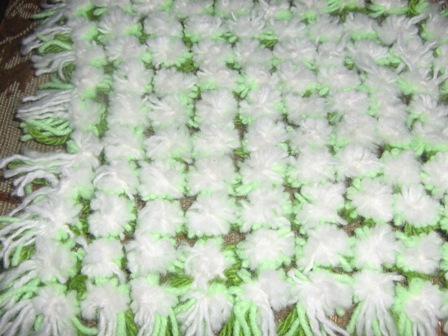 Подскажите, сколько мотков пряжи уходит на квадратный метр помпонового пледа?