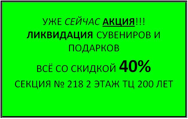 Re: Ликвидация СУВЕНИРОВ И ПОДАРКОВ. Скидки на всё 40%!
