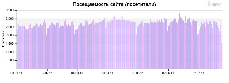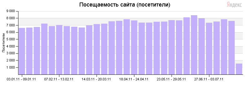 Количество уникальных посетителей на одном из сайтов в сутки, в неделю и в месяц.