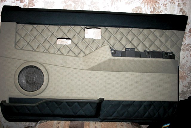 Перетянутые двери в Ниссан. Эко.кожа беж+чёрн.