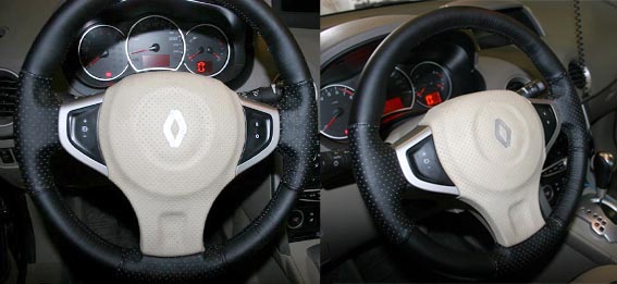 Чехлы на "Колеос" и перетянутый руль.