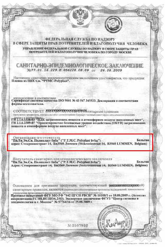 Для производства потолков наша компания использует высококачественную плёнку германского производства.