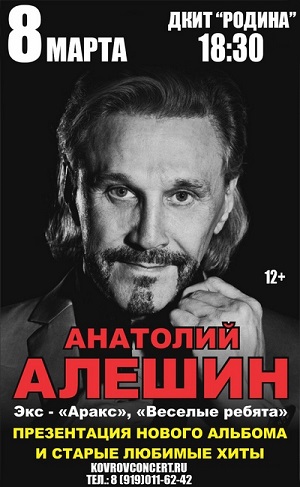 8 марта в 18.30 приглашаем на концерт легендарного вокалиста Анатолия Алёшина.