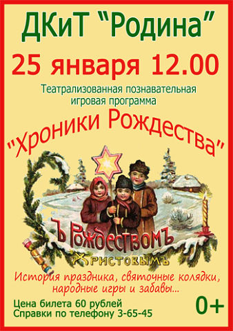 25 января в 12.00 Театрализованная познавательная игровая программа "Хроники Рождества"