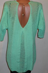 Есть в наличии полувер с вырезом на спине. Ручная работа,связано спицами.