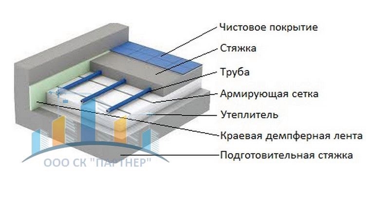 Полусухая стяжка для теплого водяного пола от ООО СК “ПАРТНЁР”,