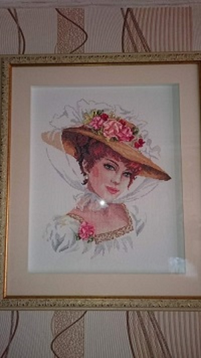 Девушка в шляпе + вышивка лентами (эффект 3д)
